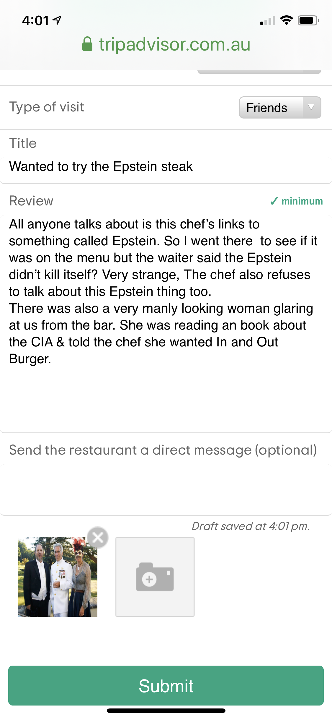 So we’ve decided to send Adam Perry Lang some feedback via TripAdvisor. Here’s our review of his restaurant (pictured).
