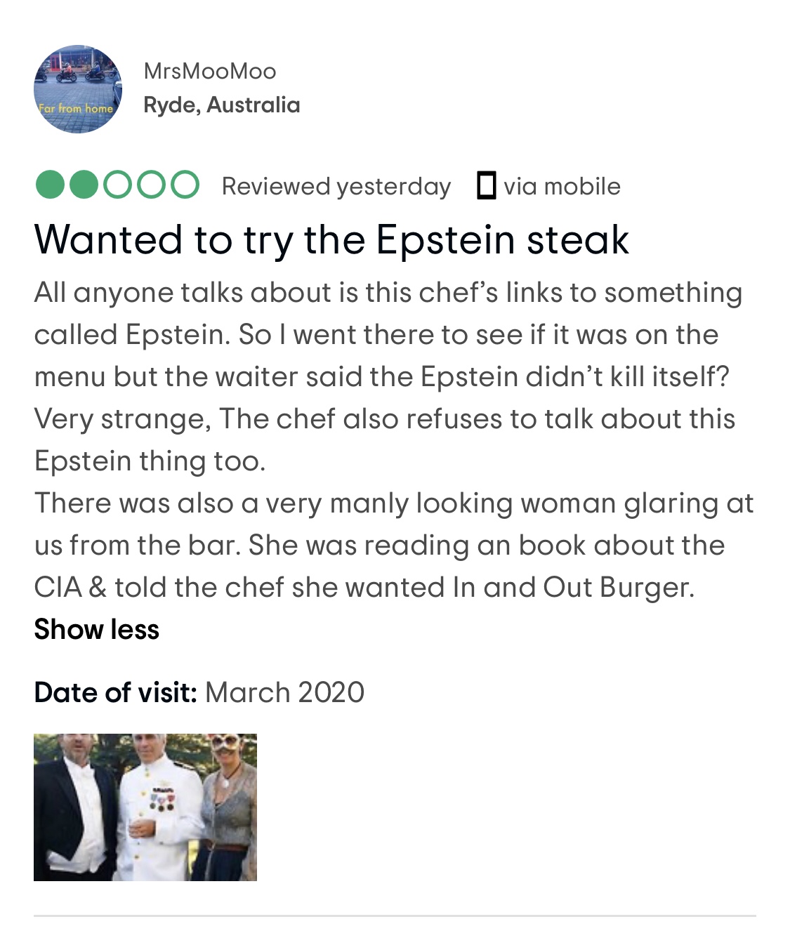 The chef was supposedly just grilling fish and grinding up rocks for Ghislaine Maxwell’s #JizzStain’s consumption.