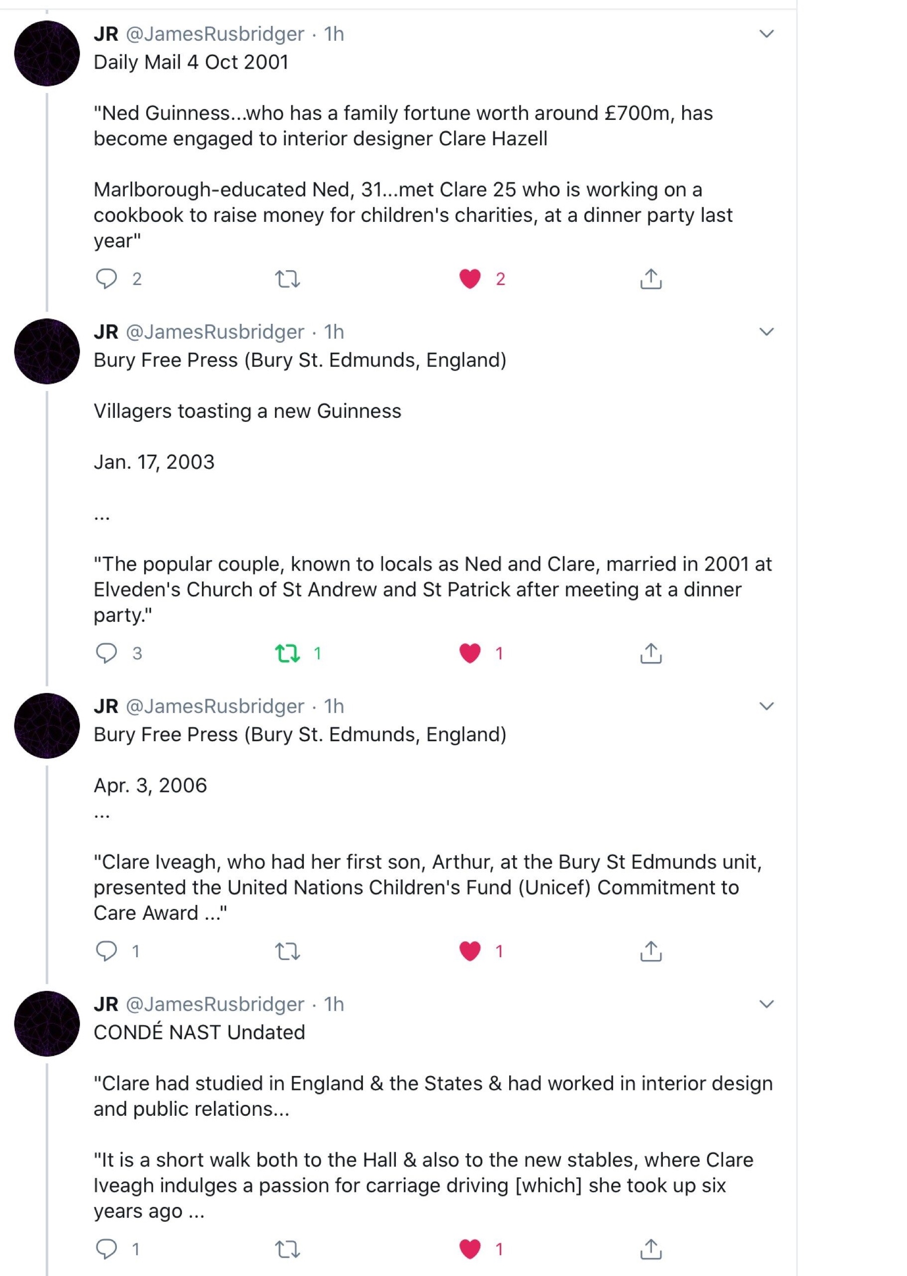 (There’s a Clare Hazell in the Epstein flight logs, who travelled on the dead sex offender’s jet more than 30 times. There’s also a Clare Hazell Iveagh in the Jeffrey Epstein black book.)