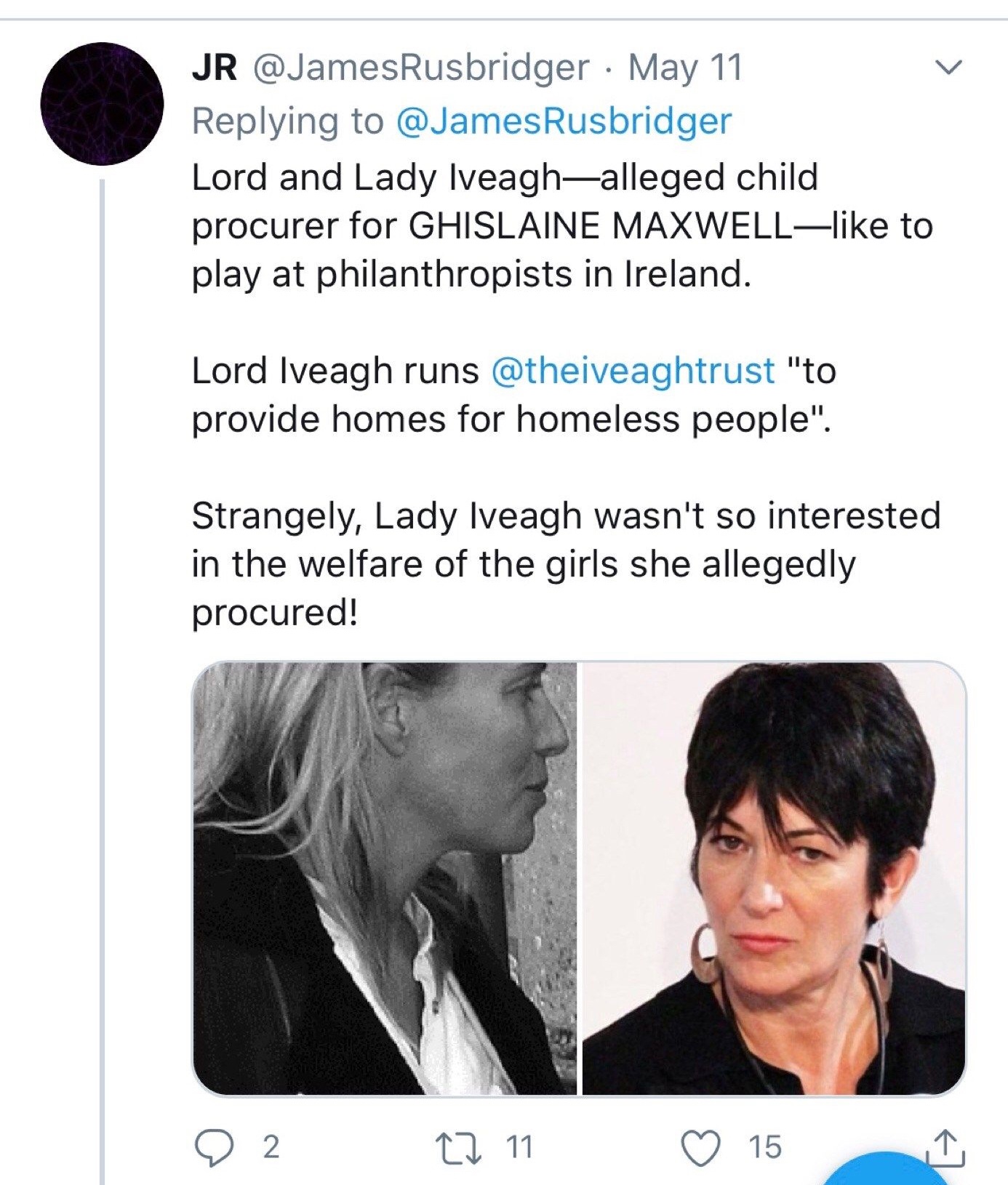 There’s a Clare Hazell in the Epstein flight logs, who travelled on the dead sex offender’s jet more than 30 times. There’s also a Clare Hazell Iveagh in the Jeffrey Epstein black book.
