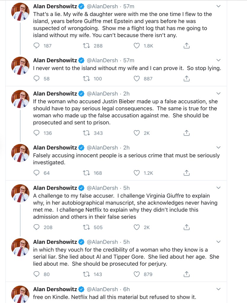 Epstein lawyer Alan Dershowitz is attacking survivor Virginia Roberts on Twitter today in the lead up to an important court hearing.