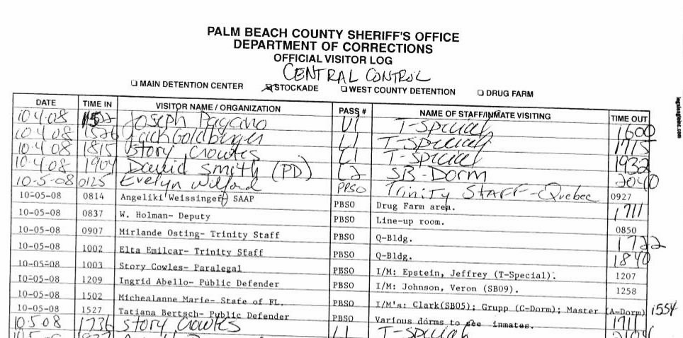 Story Cowles in the visitor logs for the Department of Corrections, Palm Beach county.