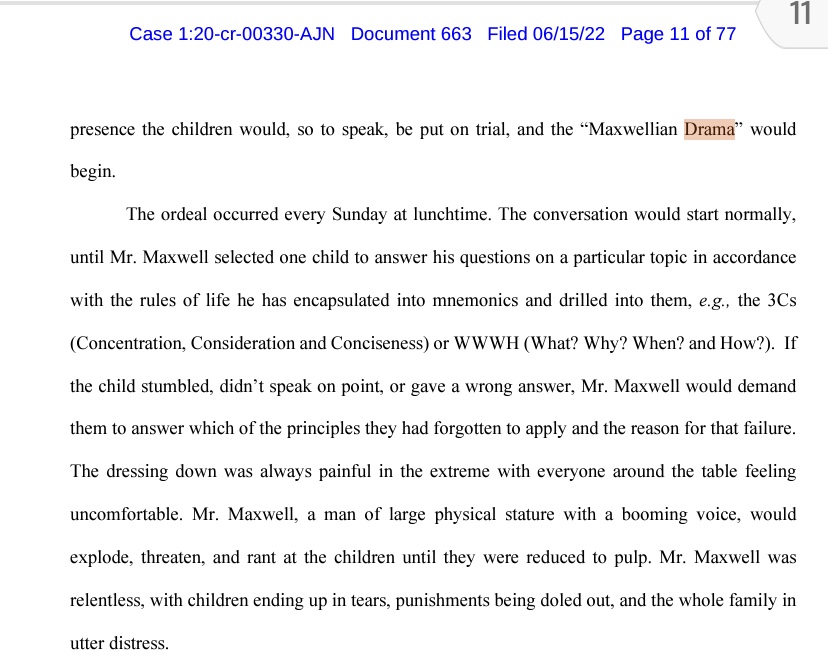 “Maxwell’s conduct was shockingly predatory. She was a calculating, sophisticated, and dangerous criminal who preyed on vulnerable young girls and groomed them for sexual abuse.” US Government Sentencing Document: US v Ghislaine Maxwell