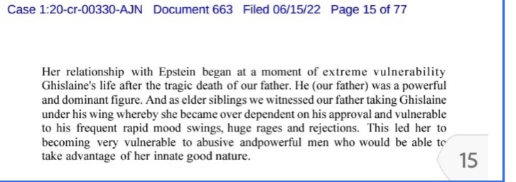 Moreover, the attempt to blame Epstein for manipulating a weak and devastated Ghislaine does not stand up to scrutiny.
